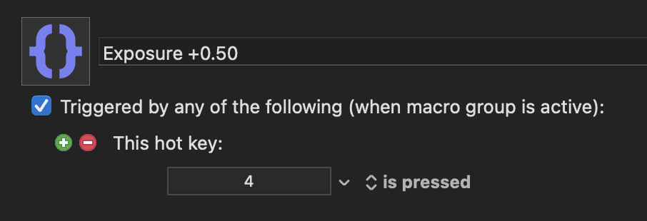 You'll notice that I have the repeat set to 5 times, this increase the exposure by 0.50. If I wanted to increase the exposure value by 1.0, I would simply have it repeat 10 times. The action in Keyboard Maestro is almost instantaneous. Much faster than manually pressing the keyboard shortcut multiple times.