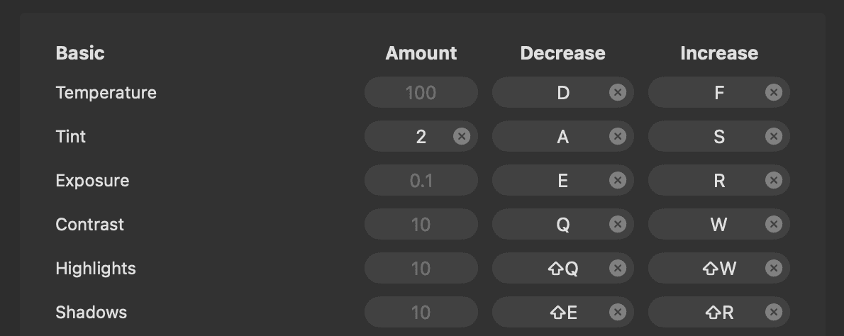 For the most part, I find the default amounts to be good for my needs. However, there are certain times when I need a different value. For example, in the screenshot above, you'll notice I am using 2 as the amount for tint. This allows me to fine-tune my tint value more easily. I also use personalized amounts when using the HSL sliders. Small changes to HSL sliders can make a big impact so I like to have smaller amounts here.